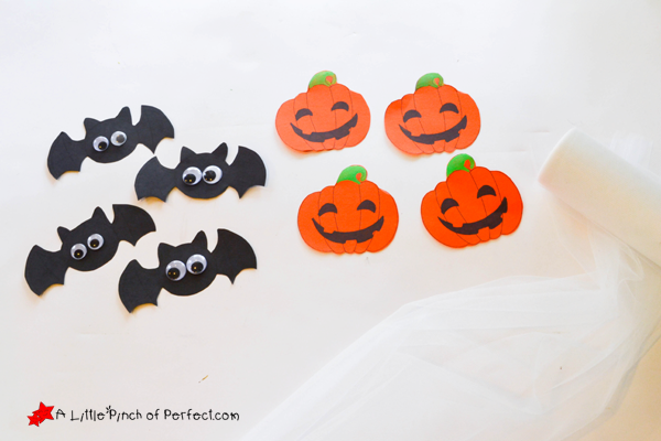 1. Print out the pumpkins on orange paper, bats on black paper, and rectangles on black, orange, and white paper.